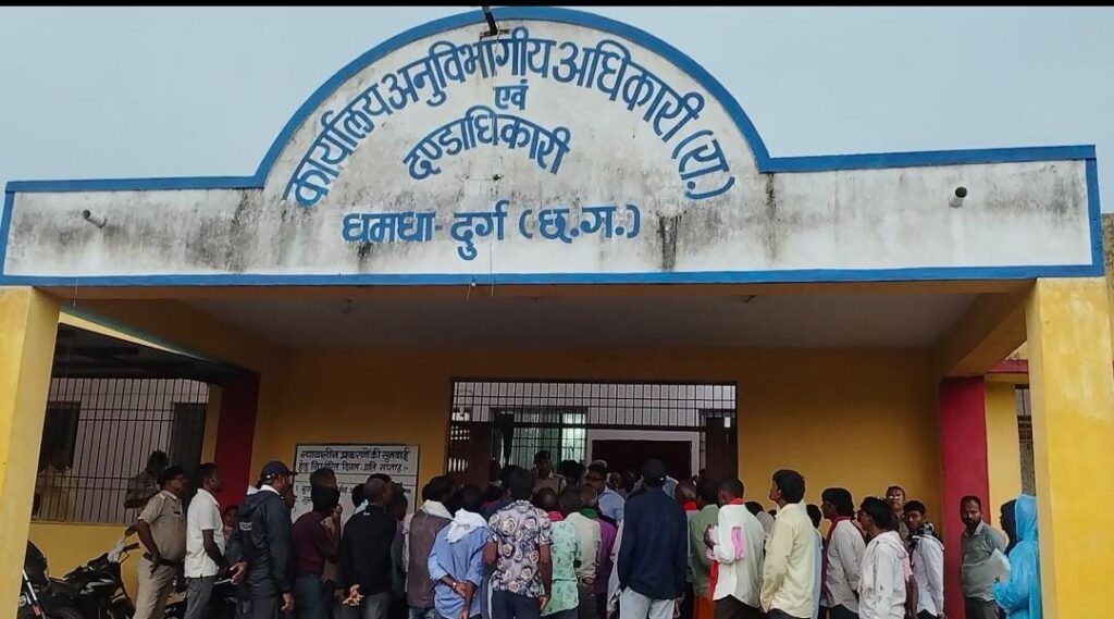 धमधा – बारिश की फुहारों के बीच भी किसानों का गुस्सा थमता नहीं दिखा। नारों और आक्रोश के साथ धमधा SDM कार्यालय पहुंचे किसानों ने साफ़ संदेश दे दिया – अब सब्र का बाँध टूट चुका है। किसानों का कहना है कि राजस्व रिकॉर्ड में पटवारियों की लापरवाही और बिजली विभाग की मनमानी कटौती उनके धान, गेहूँ और सब्ज़ी के खेतों को बर्बादी के कगार पर पहुँचा रही है। गलत खसरा, रकबा और नामांतरण की गड़बड़ी ने किसानों को तहसील की दहलीज़ से लेकर कोर्ट-कचहरी तक भटकाया है।