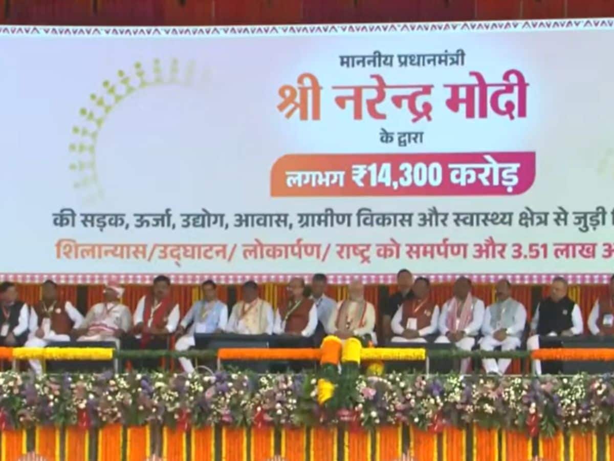 प्रधानमंत्री नरेंद्र मोदी ने सड़क, उद्योग, स्वास्थ्य सेवा और ऊर्जा जैसे प्रमुख क्षेत्रों से जुड़ी 14,260 करोड़ रुपये से अधिक की विकासात्मक और परिवर्तनकारी परियोजनाओं का उद्घाटन और शिलान्यास किया. इस मौके पर मुख्‍यमंत्री विष्‍णु देव साय सहित अन्‍य मंत्री उपस्थित थे.